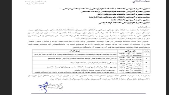 بازه زمانی سامانه نقل وانتقالات دانشجویان بازه زمانی ثبت درخواست دانشجویان درسامانه نقل وانتقالات نیم سال دوم سال تحصیلی1404-1405 گروه خبری : اخبار ویژه,اخبار بیشتر کد خبر : 58305 کپی لینک کلمات کلیدی