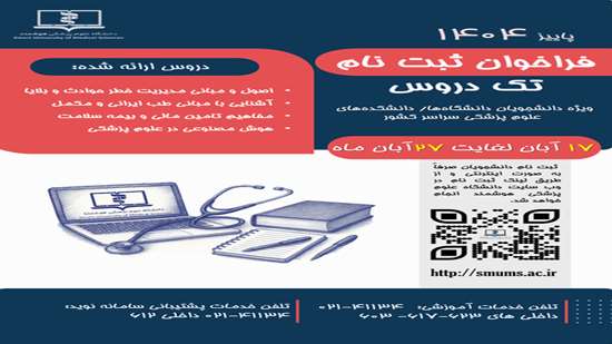 فراخوان ثبت نام تک درس خطروبلایا ویژه دانشجویان علوم پزشکی